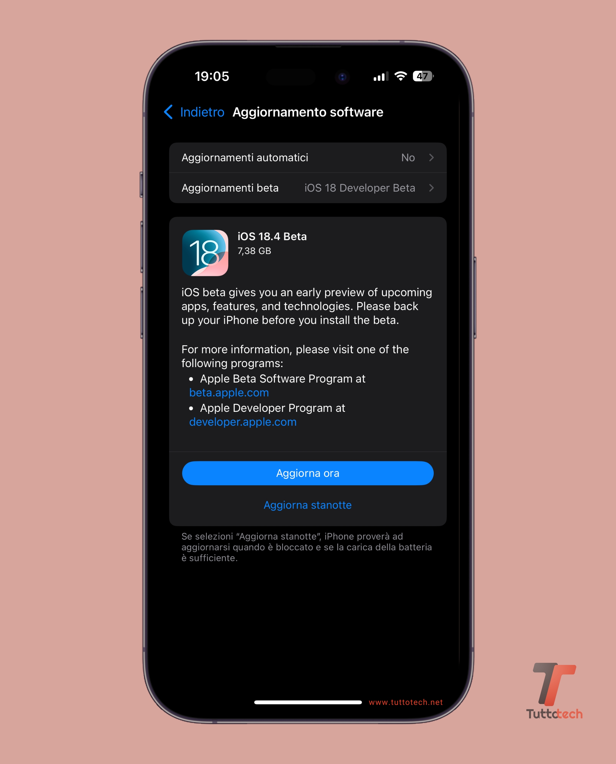 Nello specifico di iOS 18.4, la build che porta con sé la beta 1 ha un peso di 7,38 GB su iPhone 14 Pro (provenendo da iOS 18.3.1). Dal punto di vista della stabilità (segnalata internamente con l’ultima lettera del codice della build), la build parte da una classificazione “s” che denota un elevato livello di instabilità (almeno sulla carta).
