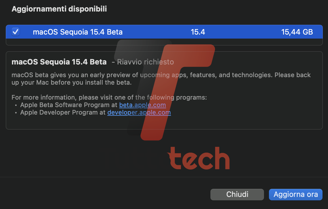 L’aggiornamento che porta con sé questa beta 1 ha un peso di 15,44 GB su MacBook Pro 16 M1 Pro (provenendo da macOS 15.3.1 Sequoia). Stando alla classificazione della stabilità della build, anche in questo caso partiamo da una classificazione “s” che indica la lontananza dalla stabilità (almeno sulla carta) della build.