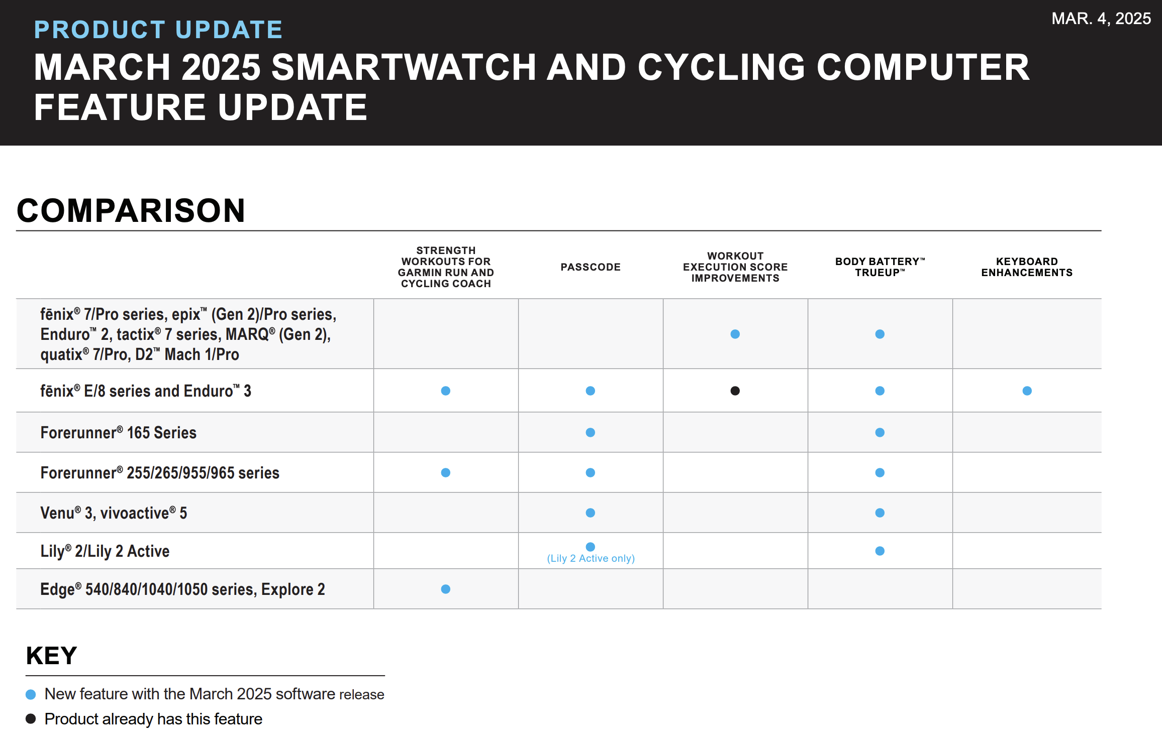 Garmin ha rilasciato il feature update di marzo 2025 per smartwatch e ciclocomputer Garmin