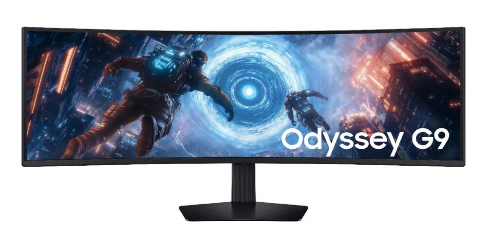 Samsung Odyssey G9 (G91F) è un gigantesco monitor curvo da gaming. Dotato di un pannello da 49 pollici con risoluzione Dual QHD (5120 x 1440 pixel) e curvatura 1000R.
