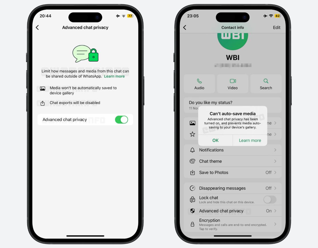 In pratica, l’idea degli sviluppatori è quella di introdurre una nuova opzione per la privacy direttamente nella schermata delle informazioni della chat: si tratta della possibilità per gli utenti di impedire a chiunque nella conversazione (sia individuale che di gruppo) di salvare automaticamente le immagini e i video ricevuti nella galleria del proprio dispositivo.