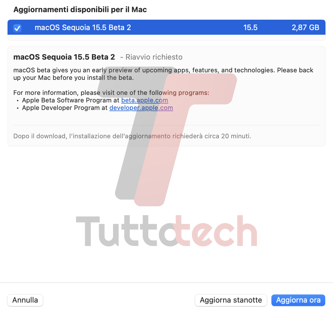 Le nuove beta 1 dei sistemi operativi iOS 18.5, iPadOS 18.5 e macOS 15.5 Sequoia, watchOS 11.5, tvOS 18.5 e visionOS 2.5, sono al momento disponibili unicamente per gli sviluppatori registrati al programma dedicato sul portale degli sviluppatori Apple che posseggono un dispositivo supportato.