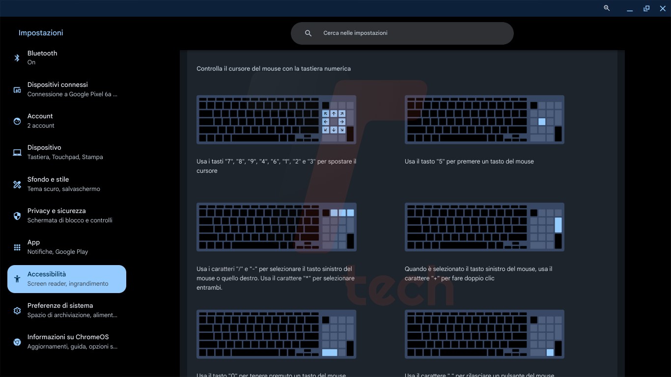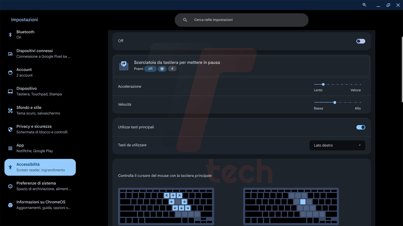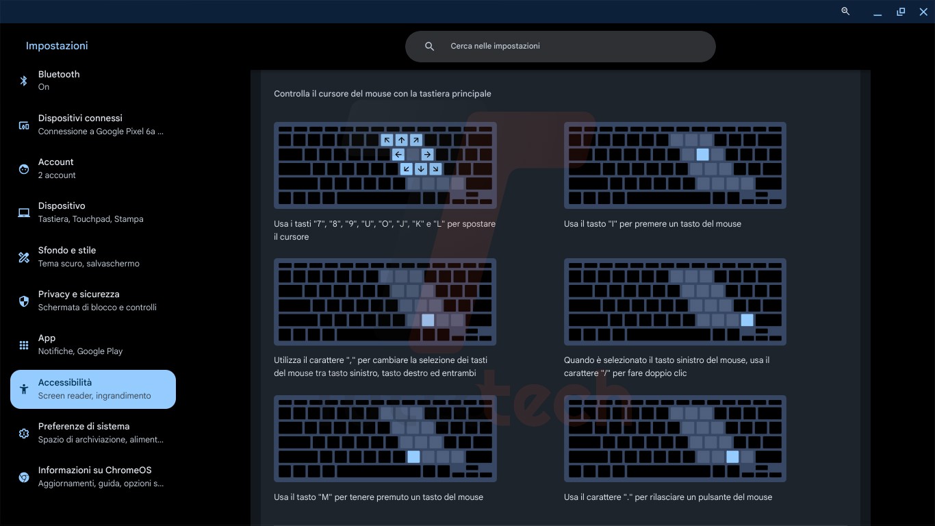 Con ChromeOS 135 fa il suo debutto ufficiale “Tasti mouse”, una funzione pensata per chi ha difficoltà motorie o dolori nell’uso del mouse: attivandola, è possibile controllare il puntatore del mouse direttamente tramite tastiera, sfruttando i tasti direzionali per il movimento.