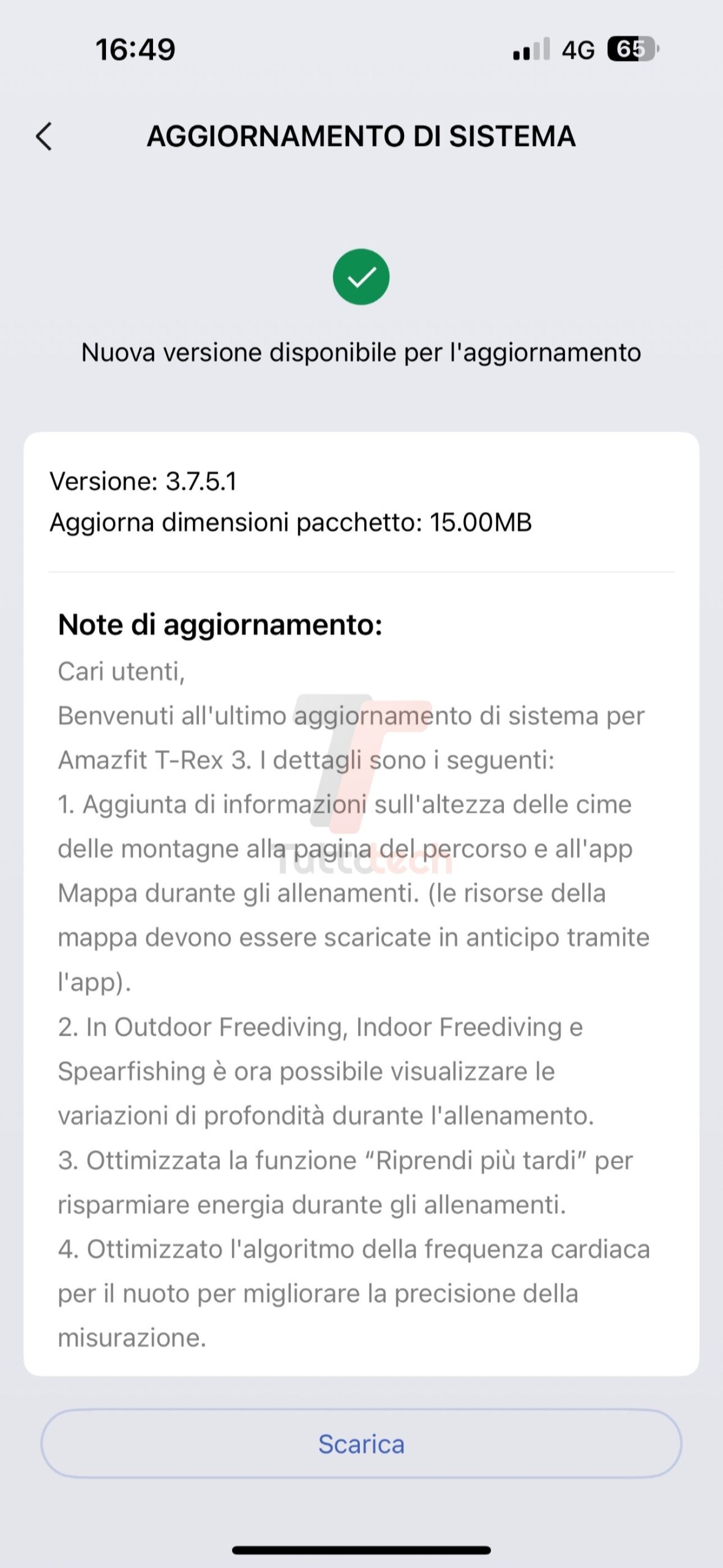 Amazfit T-Rex 3 è uno degli smartwatch più recenti del produttore ed è un modello votato soprattutto alla resistenza. In queste ore sta accogliendo un nuovo aggiornamento software, in distribuzione via OTA anche in Italia: si tratta della versione 3.7.5.1, che richiede un download di 15 MB e che porta con sé cambiamenti e miglioramenti per le mappe, per le notifiche e per il monitoraggio dell’attività fisica.