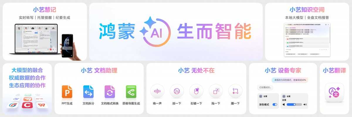 Anche HarmonyOS PC, come la controparte ottimizzata per smartphone/tablet, punta forte anche sull’intelligenza artificiale (suite Hongmeng AI). Gli utenti potranno contare su un assistente IA sempre a disposizione che potrà rispondere a domande (anche conversando botta e risposta vocalmente), estrarre immagini/tabelle dai documenti o tradurli in qualsiasi lingua e molto altro.