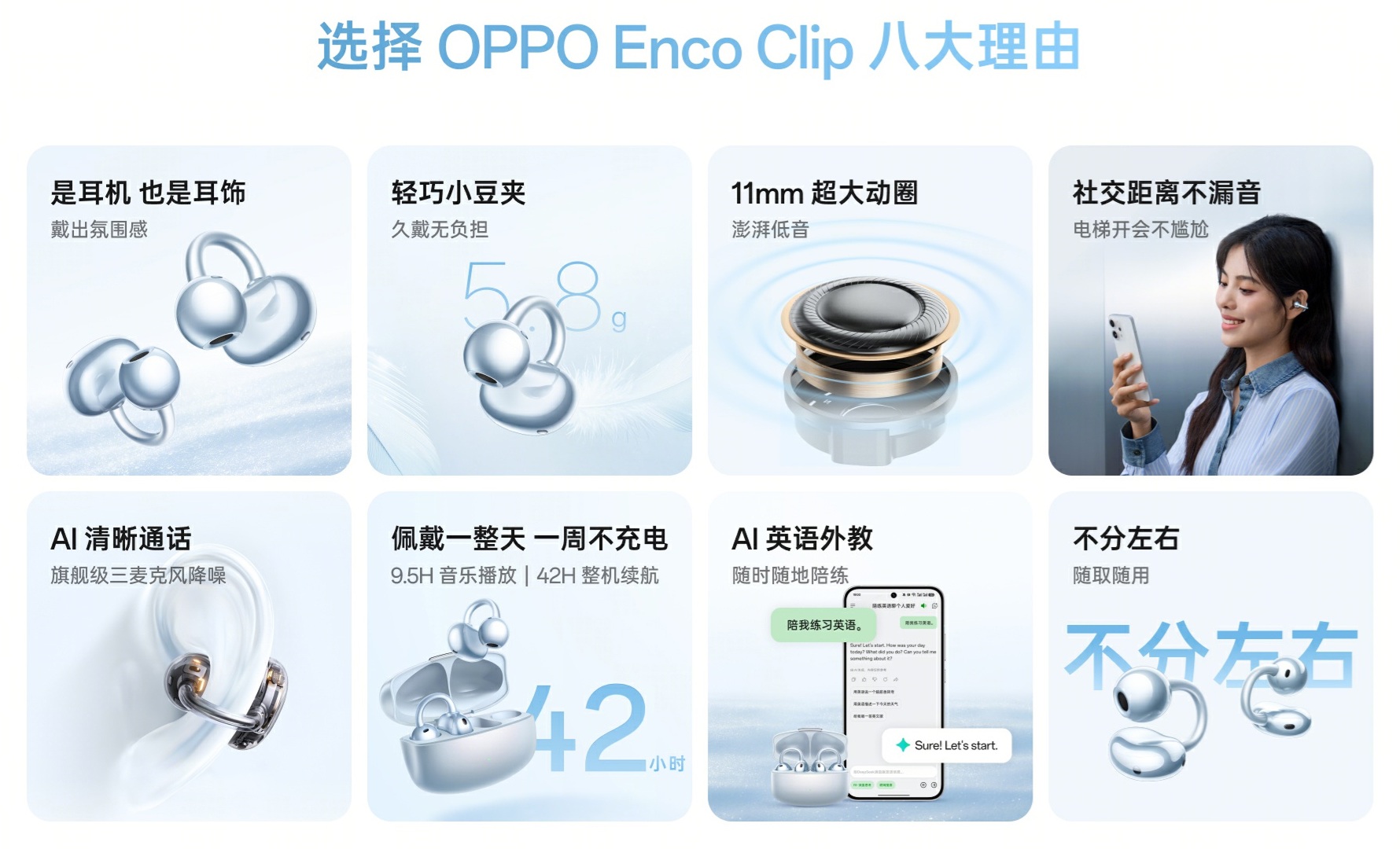 Nel giorno del lancio dei due smartphone della serie OPPO Reno14 e del tablet OPPO Pad SE sul mercato cinese, OPPO ha ufficializzato anche un nuovo paio di cuffie true wireless chiamate OPPO Enco Clip.