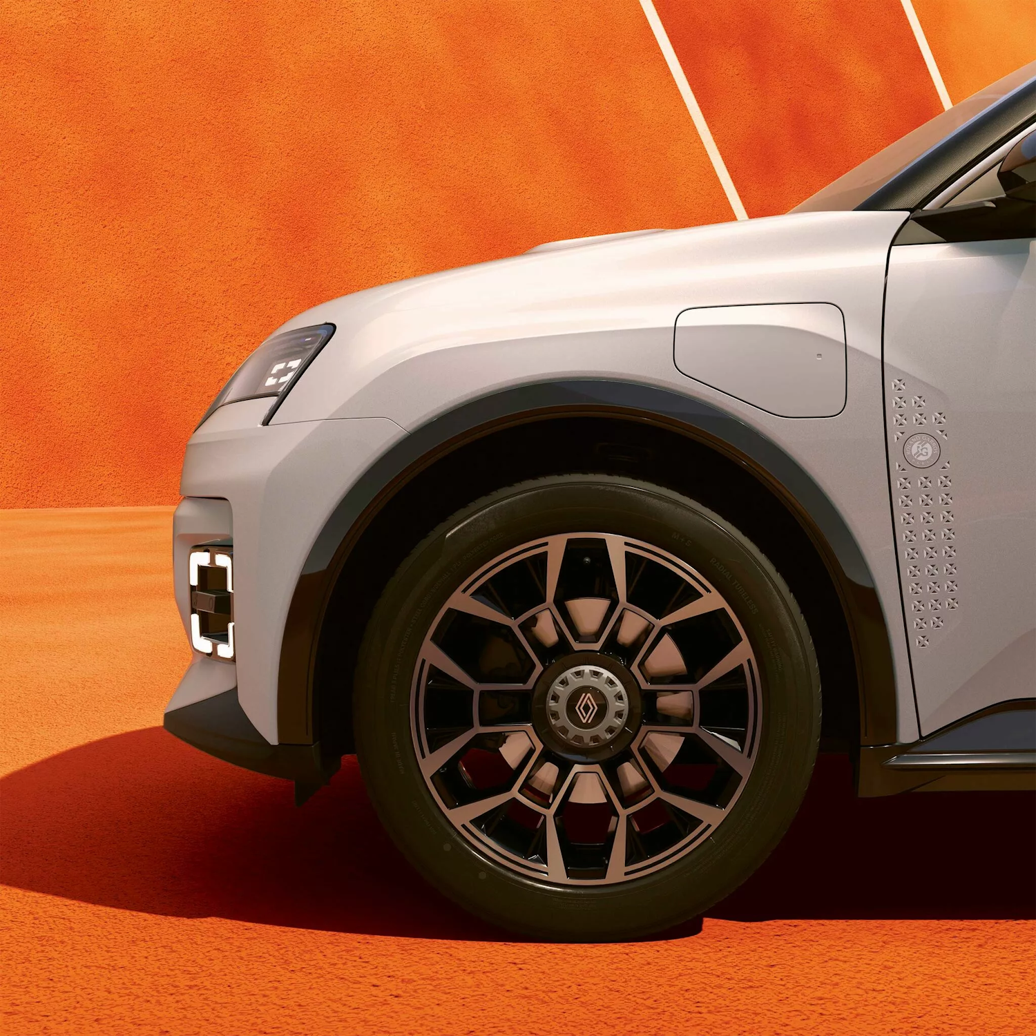 Rispetto alla Renault 4 E-Tech Electric di serie in arrivo, questa show-car propone modifiche appositamente studiate per la guida sul terreno sconnesso: abbiamo un assetto rialzato di 15 mm, carreggiata allargata di 20 mm e pneumatici Goodyear UltraGrip Performance+ da 225/55 con cerchi da 18 pollici. La trazione integrale è suggerita già dal nome ed è resa possibile dall’utilizzo di un secondo motore elettrico sull’assale posteriore: si tratta di una configurazione permessa dalla piattaforma AmpR Small, che apre prospettive di versioni 4×4 nel segmento B elettrico.