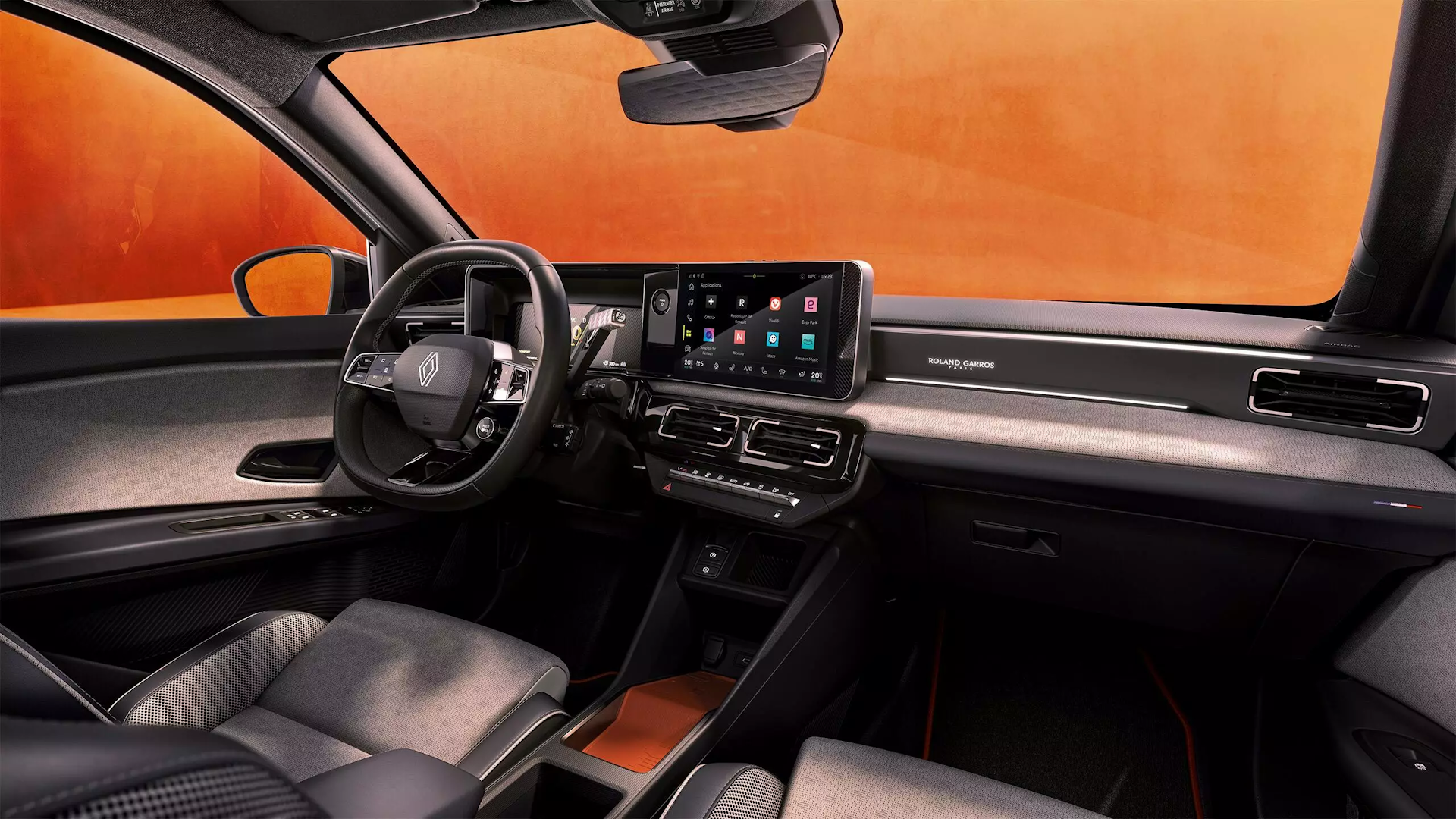 Gli interni vogliono richiamare il mondo naturale e propongono una selleria in tessuto rifinito di colore marrone scuro ricamato, con un motivo pied-de-poule che completa il rivestimento dello schienale e i supporti laterali. Renault ha integrato un logo retroilluminato, un sistema openR link e rivestimenti della plancia in tessuto marrone scuro.