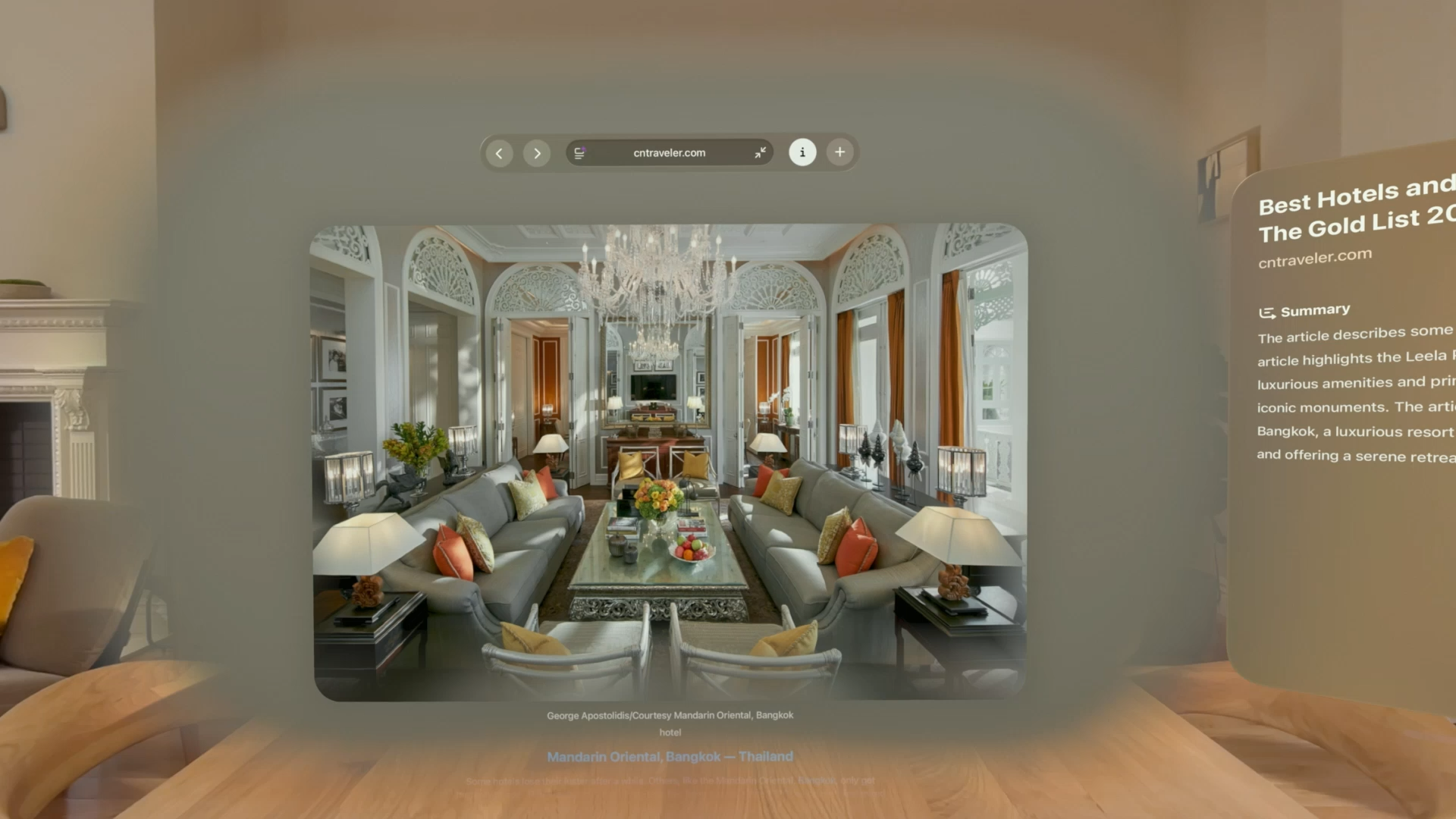 Continuando nel campo dell’immersione, anche Safari riceve un aggiornamento importante con l’introduzione della navigazione spaziale, che semplifica la lettura dei siti web e aggiunge scene 3D dinamiche al contenuto. I siti possono includere anche modelli 3D interattivi, per dare per esempio all’utente un modo più immersivo di esplorare e visualizzare un oggetto che intende acquistare da un e-commerce, visualizzandolo e manipolandolo direttamente all’interno del browser per farsi un’idea delle dimensioni.