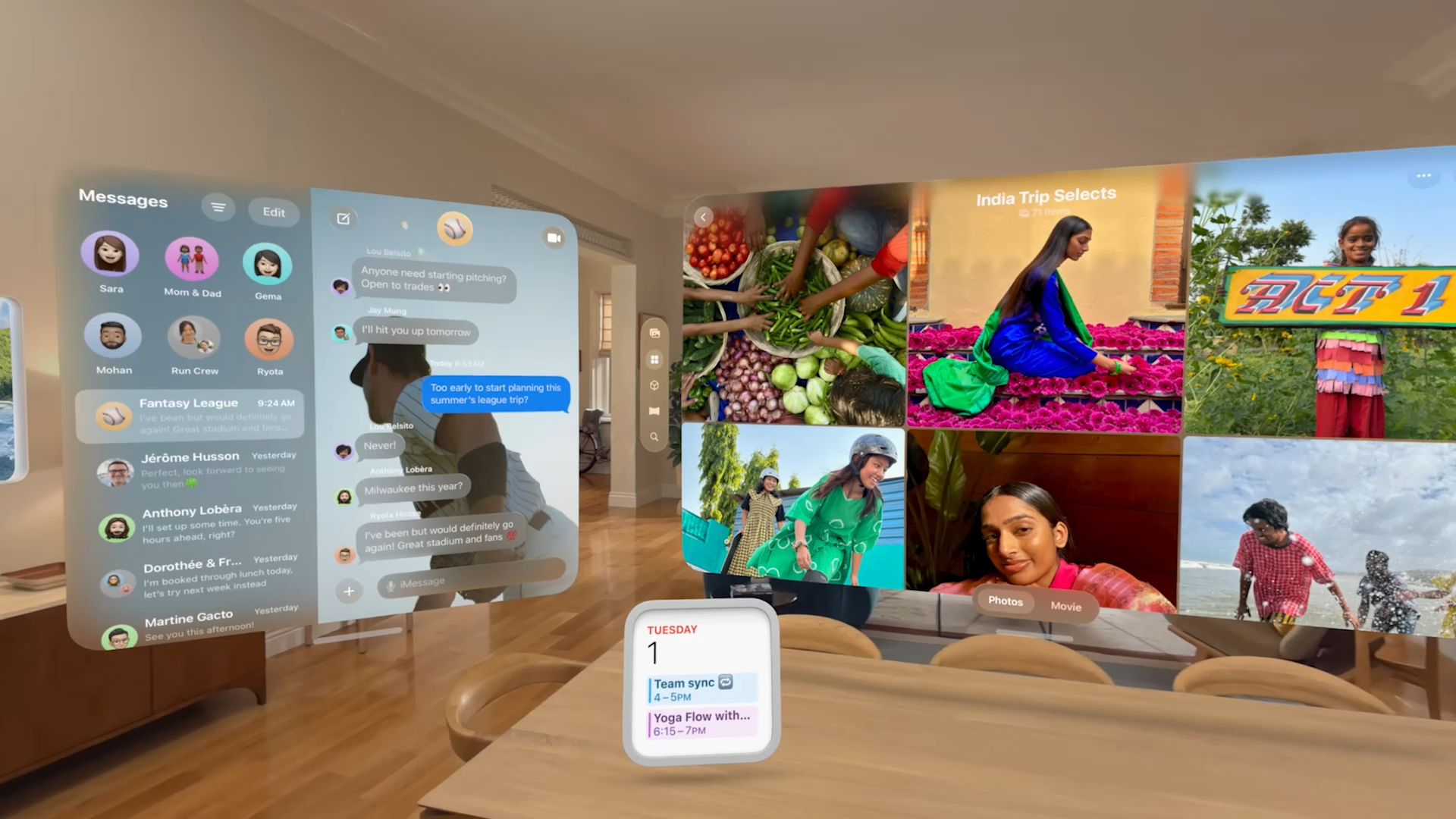 È possibile in sostanza posizionare un widget in un punto qualunque della stanza, per esempio sopra la scrivania o in cucina, e continueranno ad apparire nello stesso punto ogni volta che verrà indossato il visore. Grazie a visionOS 26 i widget sono inoltre personalizzabili per profondità, colore e dimensione, e comprendono nuove versioni di Meteo, Musica, Foto e Orologio. Con il supporto a WidgetKit, infine, anche gli sviluppatori potranno creare widget 3D per le loro applicazioni.