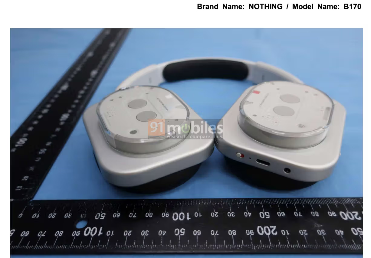 Quest’oggi, grazie alla loro comparsa sui siti di diversi enti di certificazione, vediamo alcune informazioni interessanti a proposito delle Nothing Headphone (1), a partire dal design, che è stato fotografato dalla NCC (National Communications Commission) di Taiwan, la quale identifica il prodotto col model number B170. Le stesse cuffie sono state certificate anche dalla TDRA in UAE, dalla SGS in Finlandia e dal SIRIM in Malesia. Le foto — riportate di seguito — mostrano un guscio esterno di forma rettangolare con un gioco di trasparenze ormai classico per Nothing e un design dal sapore retro che rende omaggio alle classiche cassette a nastro. Di contro, i padiglioni auricolari sono di forma ovale e di colore nero (al pari del cuscinetto dell’archetto), mentre le viti a vista e il font del logo di Nothing completano un design ben riconoscibile. Nel complesso, il produttore ha creato un sapiente mix di più colori: bianco, grigio, nero e un tocco di rosso.