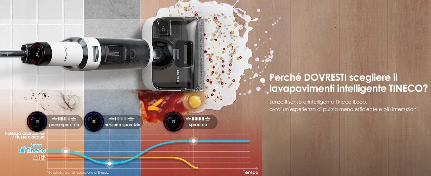 Infine, la tecnologia proprietaria Tineco iLoop gestisce autonomamente la velocità di rotazione della spazzola e la potenza di aspirazione in base al grado di sporco rilevato. Questo ottimizza il consumo energetico e assicura l’eliminazione senza sforzo anche delle macchie più ostinate. L’indicatore LED che circonda il display fornisce un feedback visivo immediato sul livello di sporco del pavimento: un anello rosso segnala la necessità di maggiore attenzione, mentre il colore blu indica una superficie pulita e igienizzata.
