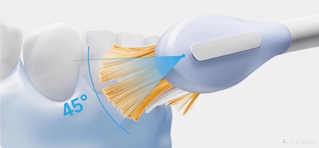 La testina è stata progettata con un’inclinazione definita “golden tilt” a 45 gradi, che riflette il metodo di spazzolamento Bass, consigliato da molti dentisti per la sua efficacia nella cura delle gengive.