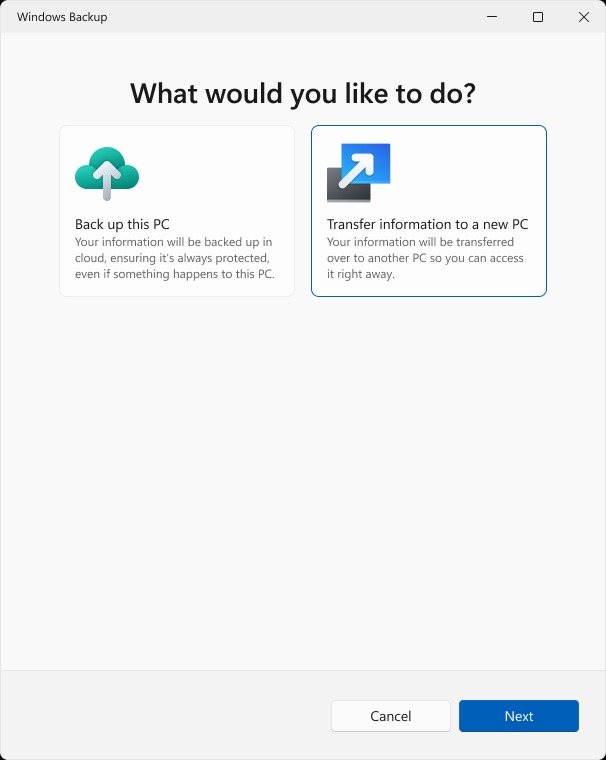 Sul vecchio PC basta aprire l’app Backup di Windows, selezionare la voce Trasferisci informazioni a un nuovo PC e seguire le istruzioni a schermo per associare i due computer tramite un codice di sicurezza; a quel punto, sarà possibile scegliere manualmente quali cartelle (o addirittura unità intere) trasferire sul nuovo dispositivo.