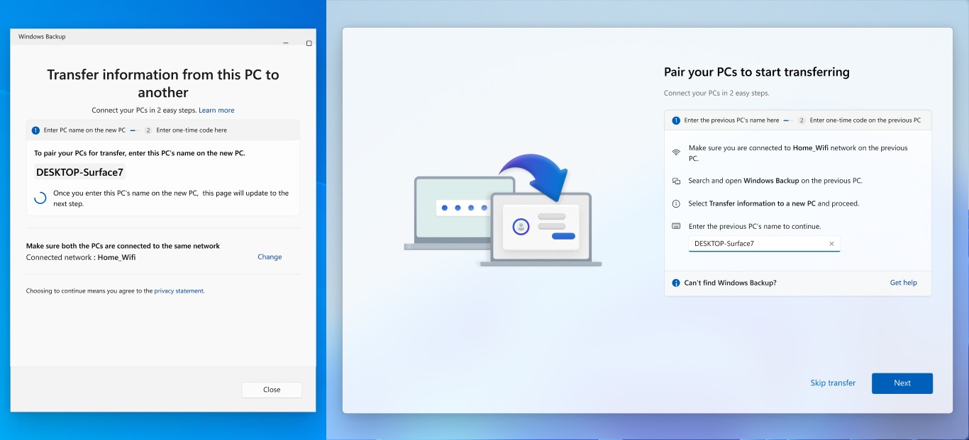 La nuova esperienza di backup, attualmente disponibile in anteprima per i membri del programma Windows Insider, consente di collegare due dispositivi sulla stessa rete locale e di trasferire file, impostazioni e preferenze dell’utente da uno all’altro, senza bisogno di chiavette USB, dischi esterni o backup cloud.