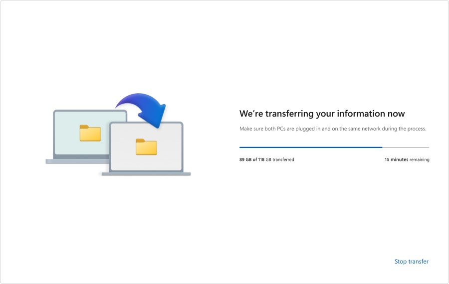 Con la fine del supporto ufficiale a Windows 10 sempre più vicina (la scadenza è fissata per il mese di ottobre) Microsoft sta preparando una serie di strumenti per rendere il passaggio a Windows 11 il più indolore possibile; tra questi una novità emersa di recente potrebbe fare davvero la differenza, un nuovo sistema di trasferimento dati tra vecchio e nuovo PC, integrato direttamente nella configurazione iniziale del sistema operativo.