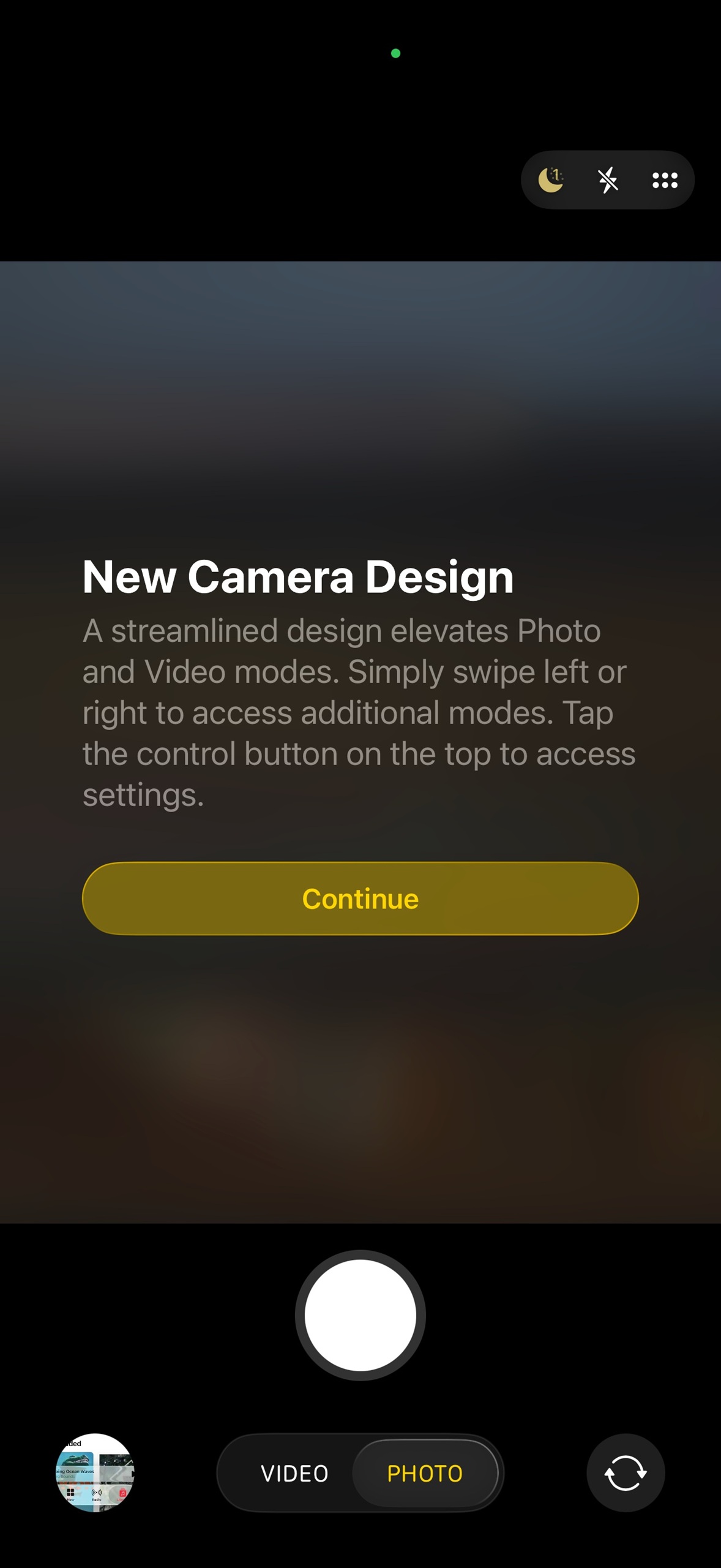 Come suggerito dai colleghi di 9to5Mac, poi, Apple ha introdotto una vera e propria schermata informativa di benvenuto che mette in evidenza il fatto che l’app Fotocamera abbia ricevuto un nuovo design.