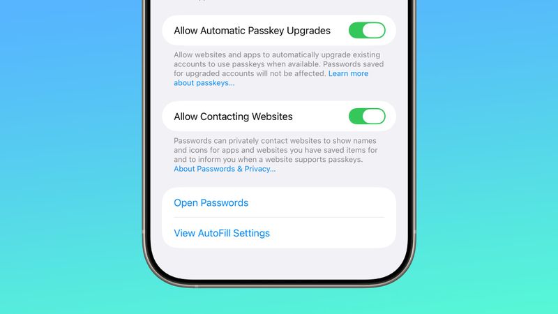 - L’app Password guadagna l’opzione “Allow Contacting Websites” (lett. Consenti contatto ai siti Web) che consente all’app di contattare i siti Web per mostrare i nomi e le icone delle app e dei sisti Web stesso e far sapere all’utente se quell’app o quel sito supporta le passkey.