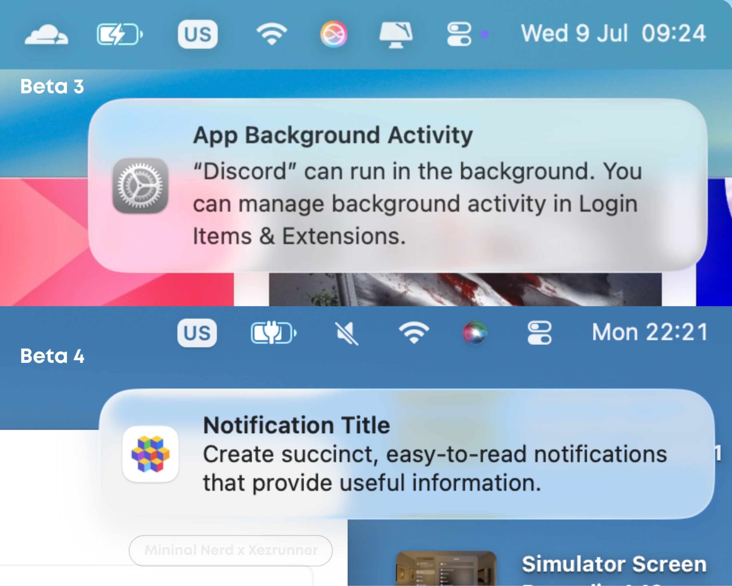 Passiamo ora a macOS 26 Tahoe, il sistema operativo di prossima generazione per i computer Mac, che con la beta 4 per sviluppatori guadagna due piccole modifiche che riflettono cambiamenti apportati a iOS 26 con la beta 4 per sviluppatori.