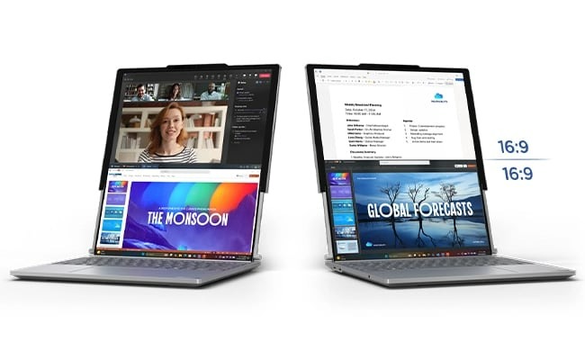 Lo schermo OLED offre una frequenza di aggiornamento a 120 Hz, una luminosità di picco di 400 nit e una risoluzione che passa dai 2000 x 1600 pixel nella configurazione da 14 pollici fino a 2000 x 2350 pixel nella modalità estesa da 16,7 pollici. Non mancano poi dettagli premium come il supporto al Dolby Atmos, connettività WiFi 7, Bluetooth 5.4, speaker Harman Kardon e una batteria da 66 Whr, che a detta di Lenovo è in grado di ricaricarsi dell’80% in soli 60 minuti grazie all’adattatore da 65 W e il supporto al Rapid Charge.