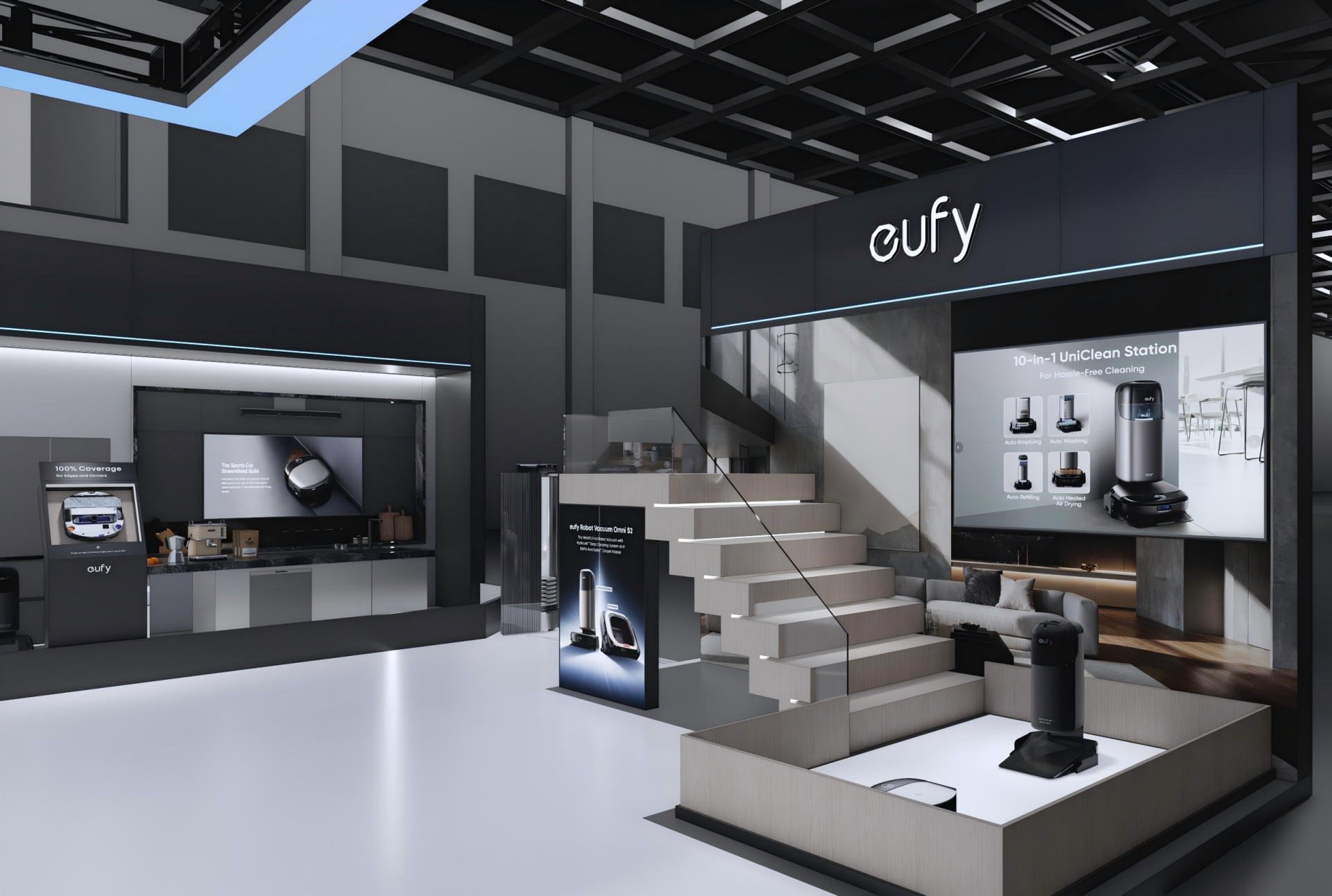Dovremo invece aspettare la prima metà del prossimo anno per vedere Eufy Marswalker, il trasportatore in grado di salire le scale e pensato per interagire proprio con S2 e consentirgli di pulire a fondo anche abitazioni disposte su più livelli senza dover spostare il robottino a mano.