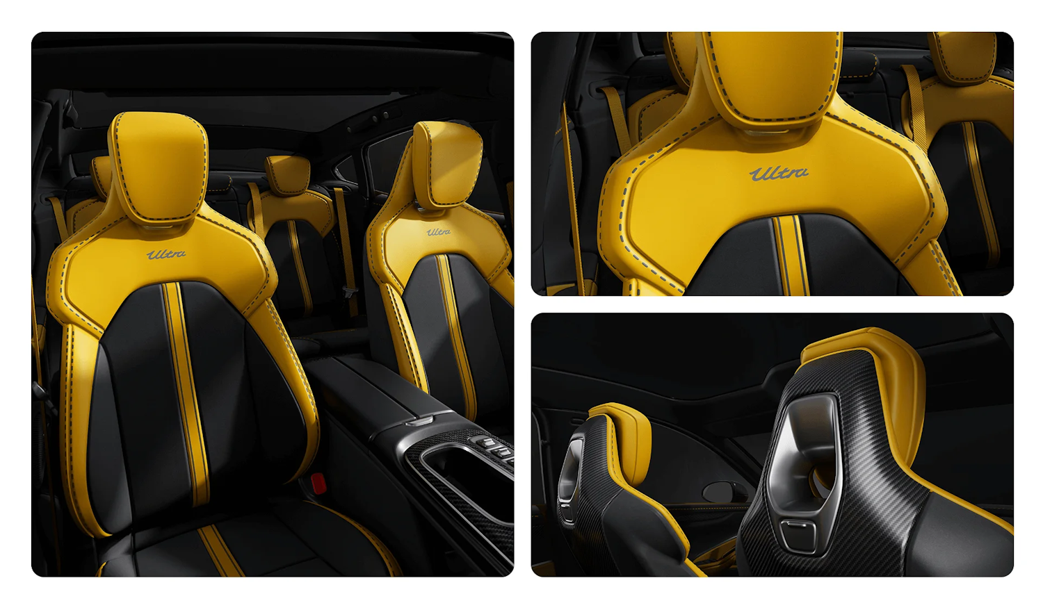 Gli interni della SU7 possono contare su superfici realizzate in gomma morbida che imitano la texture della pelle dell’auto e sono caratterizzati da un’elegante finitura Glacier White, con dettagli fedeli in tutto l’abitacolo. La versione SU7 Ultra offre interni in gomma dura dal design sportivo, che ricalcano quelli della vettura reale anche nei dettagli (come le cuciture gialle).