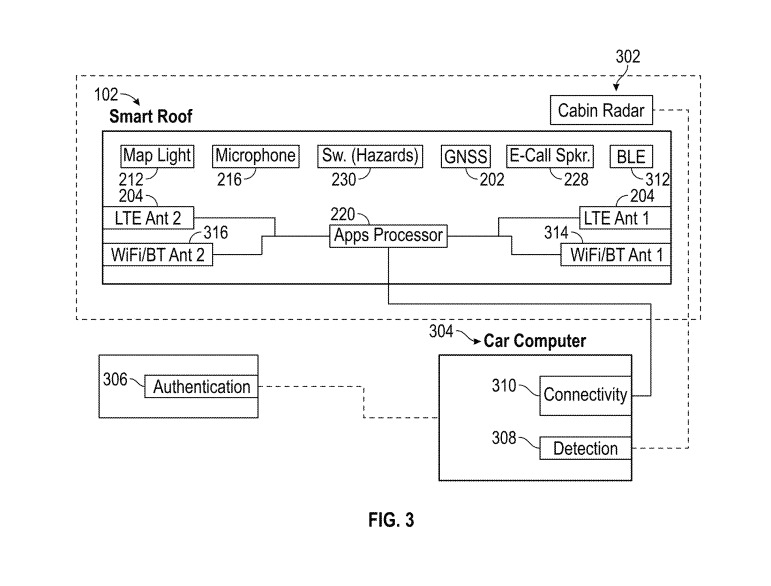 Come specificato direttamente nella comunicazione, l’obbiettivo è consentire la trasmissione RF da e verso i moduli del veicolo, rendendo possibile la comunicazione satellitare sia dall’interno che dall’esterno dell’auto. Un approccio che, almeno sulla carta, potrebbe eliminare la necessità di antenne esterne ingombranti o soluzioni aggiuntive visivamente invasive.