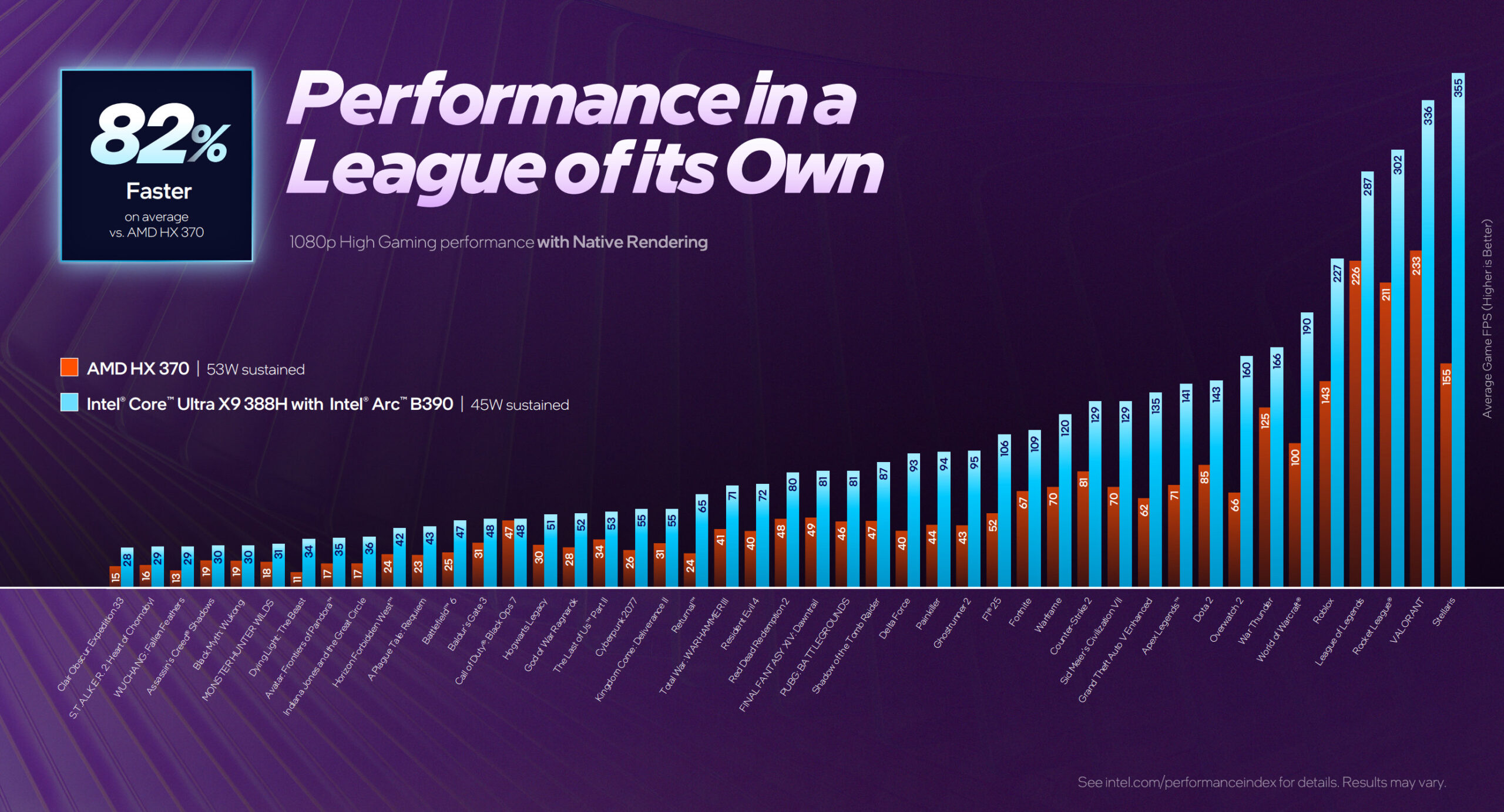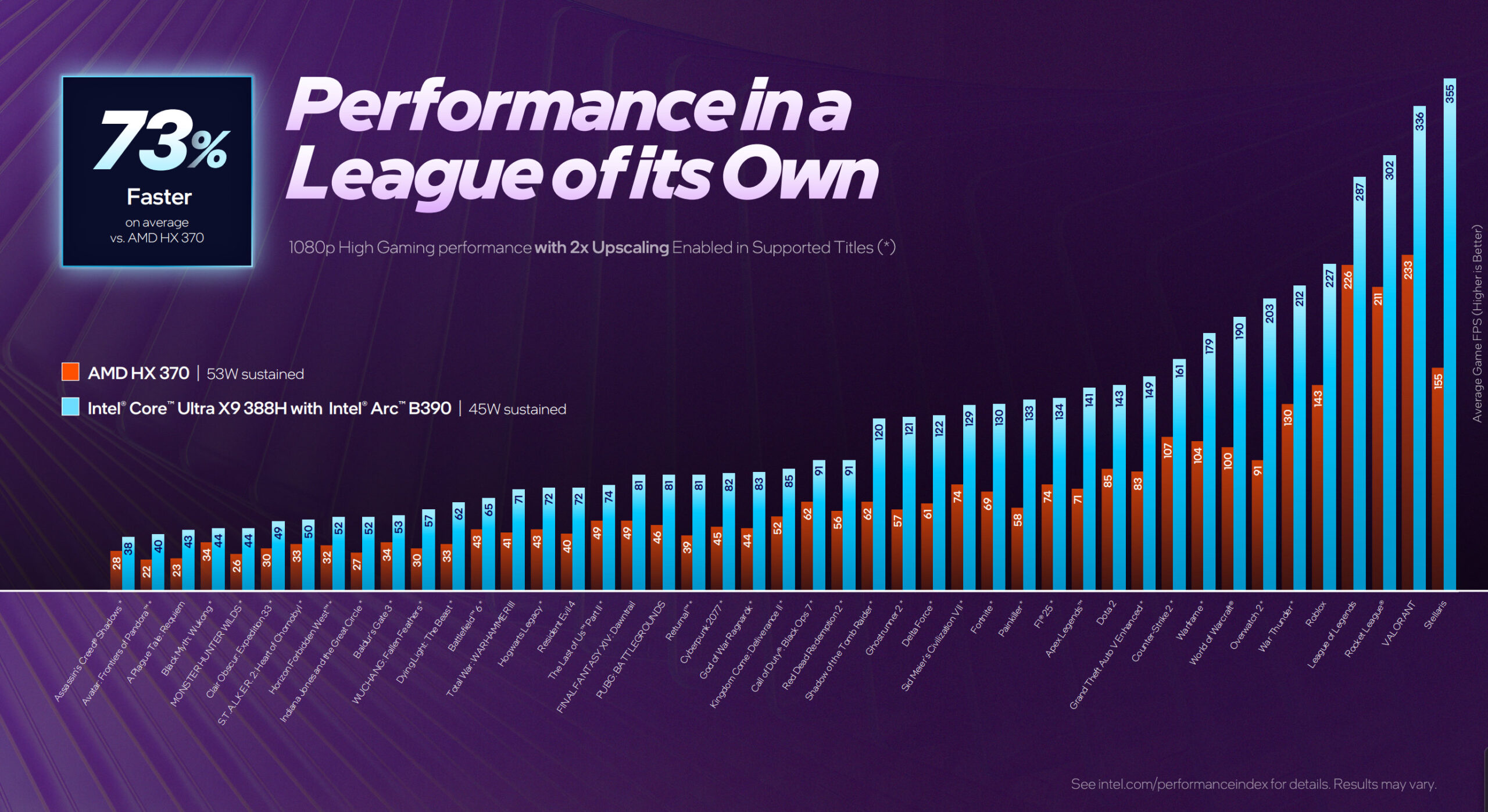 Una caratteristica quest’ultima a dir poco decisiva in ottica gaming e soprattutto console portatili, non a caso si tratta dell’unica GPU integrata a supportare al momento il MFG grazie alla tecnologia proprietaria XeS3, un vantaggio notevole che secondo Intel permette letteralmente di stracciare la concorrenza, compresa la Radeon 890M di AMD, avvicinandosi alle prestazioni offerte da una NVIDIA GeForce RTX 4050.