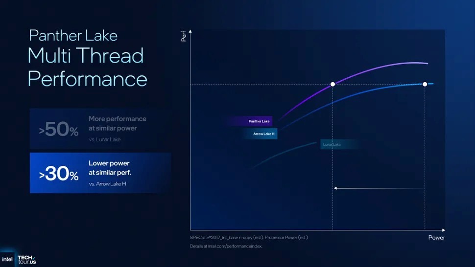 Il debutto dei processori e della piattaforma Panther Lake era molto atteso, non tanto per il possibile incremento delle prestazioni, ma anche e soprattutto per la migliorata efficienza energetica del nodo produttivo Intel 18A. Intel ha enfatizzato molto tale aspetto, sottolineando tra l’altro che si tratta di soluzioni realizzate completamente negli Stati Uniti, un particolare che viste le vicende tecnico/politiche degli ultimi mesi non va sottovalutato.