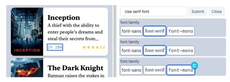 Gli sviluppatori iniziano fornendo un prompt (come avviene già oggi con gli LLM), ma a quel punto il processo cambia radicalmente: ogni richiesta viene collegata a una specifica porzione dell’interfaccia, evitando modifiche indesiderate sul progetto. Il sistema, basato su GPT-4o, suggerisce quindi diverse alternative per colmare lacune individuate, permettendo di confrontare rapidamente più soluzioni grazie a un’anteprima aggiornata in tempo reale.