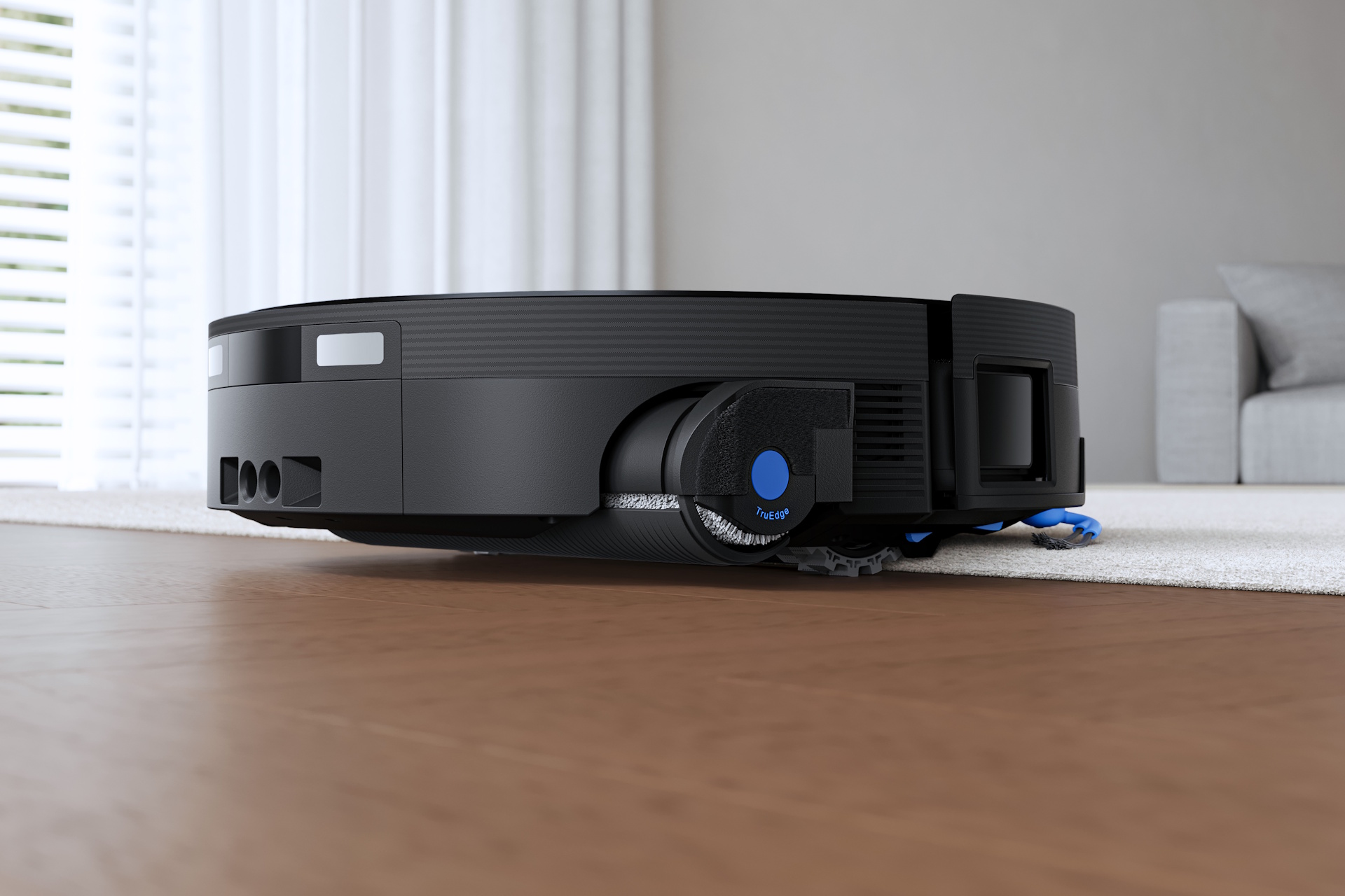 In presenza dei tappeti, il robot può sollevare automaticamente il rullo di 15 cm e dispiegare una copertura in plastica che separa il rullo bagnato dalle fibre. Lungo le pareti e vicino ai mobili entra in gioco la tecnologia TruEdge 3.0 Extreme, che utilizza un rullo su cuscino d’aria (2,58 cm) per adattarsi al meglio al bordo, e viene sfruttato il sensore TruEdge 3D 2.0, che migliora la gestione dei bordi irregolari e degli ostacoli.