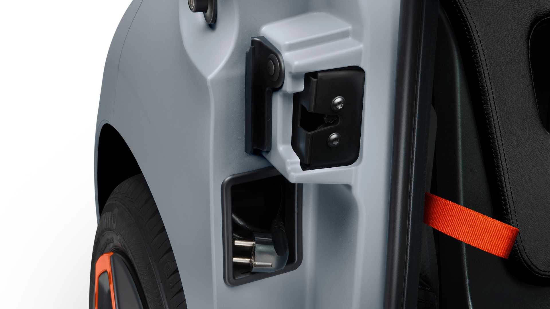 Ai piedi del passeggero è presente un piccolo spazio per oggetti e bagagli, che possono essere collocati in un piccolo spazio dietro ai sedili. Ottima la visibilità grazie alle ampie superfici vetrate e al tetto panoramico. La ricarica avviene tramite in cavo alloggiato nel montante dal lato passeggero e richiede circa 3 ore con una normale presa a 220 V.