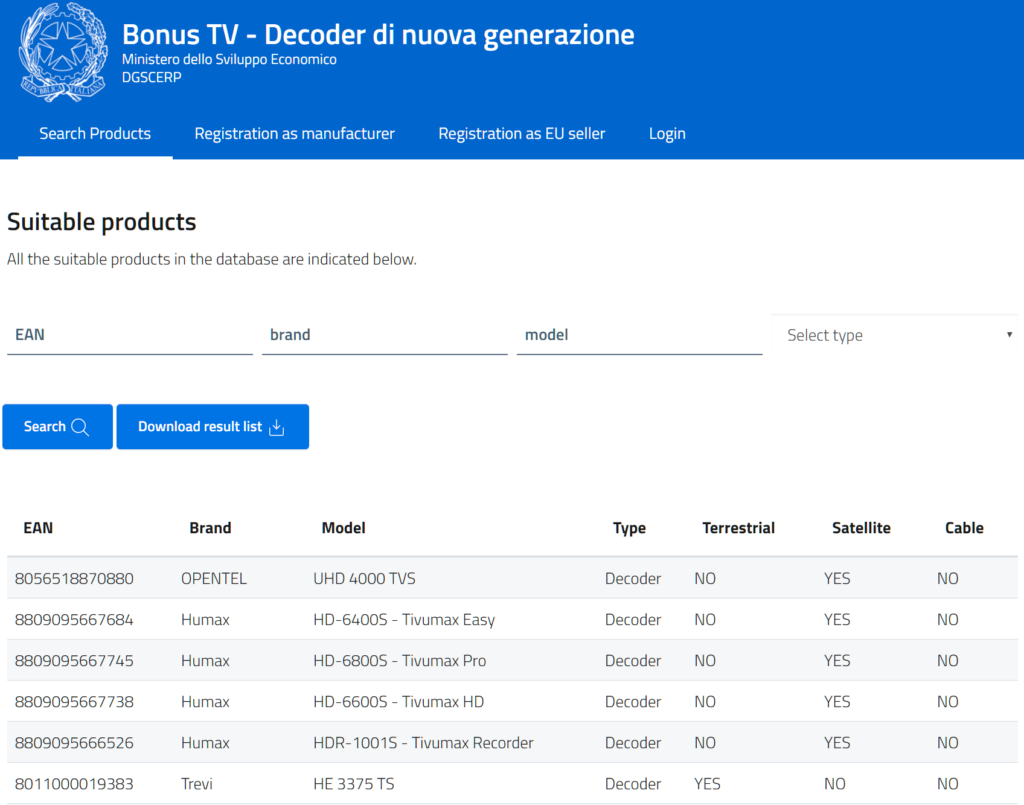 Si tratta di un vero e proprio catalogo contenente una lista ricca, ma non esaustiva, di prodotti compatibili con le specifiche tracciate dal Ministero. In linea di massima, se un prodotto è stato immesso sul mercato italiano dopo Gennaio 2017, deve per legge essere compatibile con le specifiche di cui sopra: se non siete sicuri, potete anche farvi aiutare nella scelta dal venditore stesso.