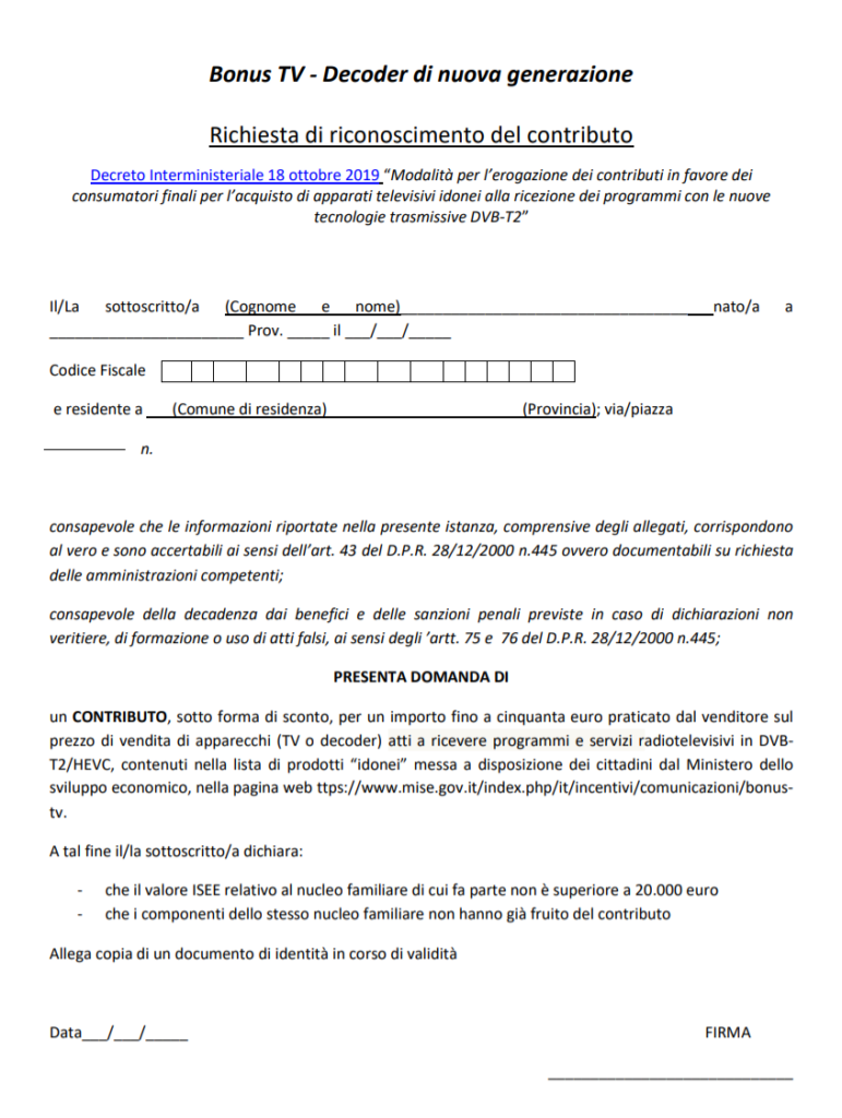 Se siete curiosi di sapere come richiedere il bonus TV 2020, sappiate che è facilissimo, in quanto i requisiti per poterne disporre sono soltanto due: avere un ISEE non superiore a 20.000 euro e essere cittadini italiani. Chi ha diritto al bonus TV, per ottenere lo sconto, deve presentare al venditore un modulo compilato in cui si autocertifica che: