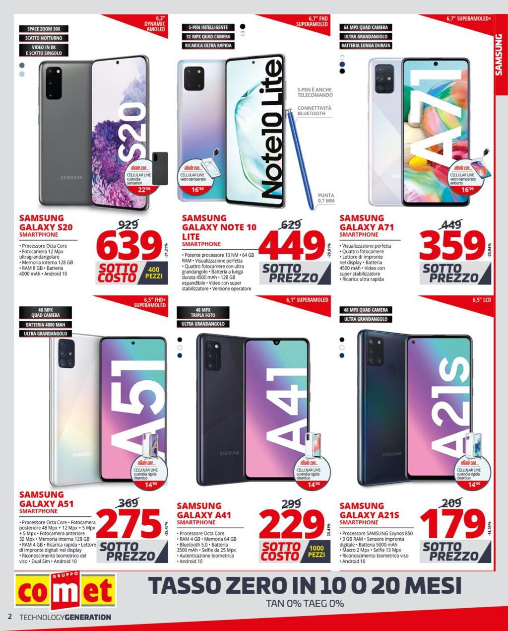 Il nuovo volantino di Comet, valido fino al 2 agosto 2020, include una vasta selezione di smartphone Android, su cui ci saranno sconti fino al 60% sul prezzo di listino, nonchè la possibilità di chiedere un finanziamento in 20 rate a tasso zero (TAN 0%, Taeg 0%). Gli smartphone non sono però, come abbiamo già anticipato, gli unici prodotti in super offerta, per cui abbiamo deciso di raccogliere di seguito anche le migliori offerte anche su TV, fotocamere, notebook e wearable.