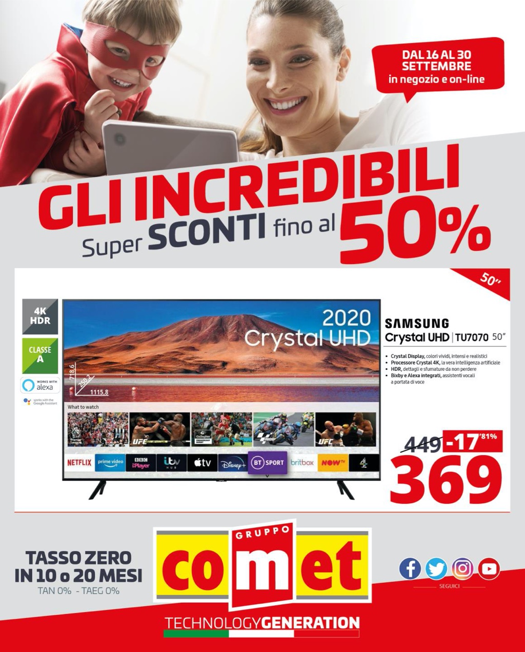 Sono questi giorni ricchi di offerte in casa Comet: è stato infatti lanciato il nuovo volantino Gli incredibili, che offrirà super sconti fino al 50% – oltre al finanziamento a tasso zero – su una selezione di prodotti d’elettronica, tra cui non mancano TV, notebook, piccoli e grandi elettrodomestici.