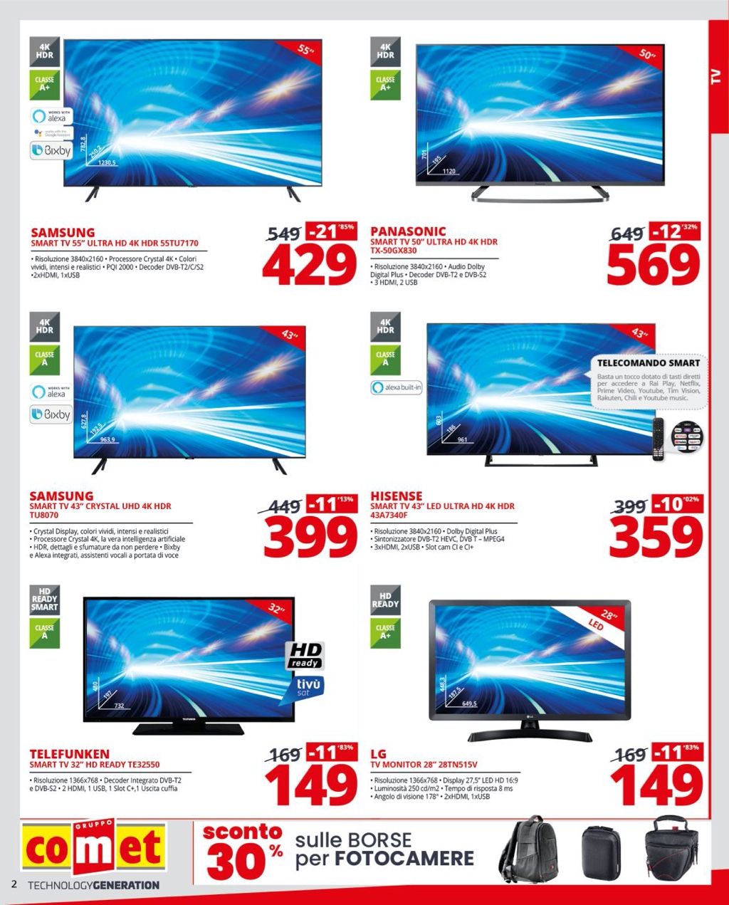 Il volantino di Comet, valido fino al 30 settembre 2020, include un’ampia selezione di smartphone Android, su cui ci saranno sconti fino al 60% sul prezzo di listino, nonché la possibilità di chiedere un finanziamento in 20 rate a tasso zero (TAN 0%, Taeg 0%). Gli smartphone non sono però, come abbiamo già anticipato, gli unici prodotti in super offerta, per cui abbiamo deciso di raccogliere di seguito anche le migliori offerte anche su TV, fotocamere, notebook e wearable.