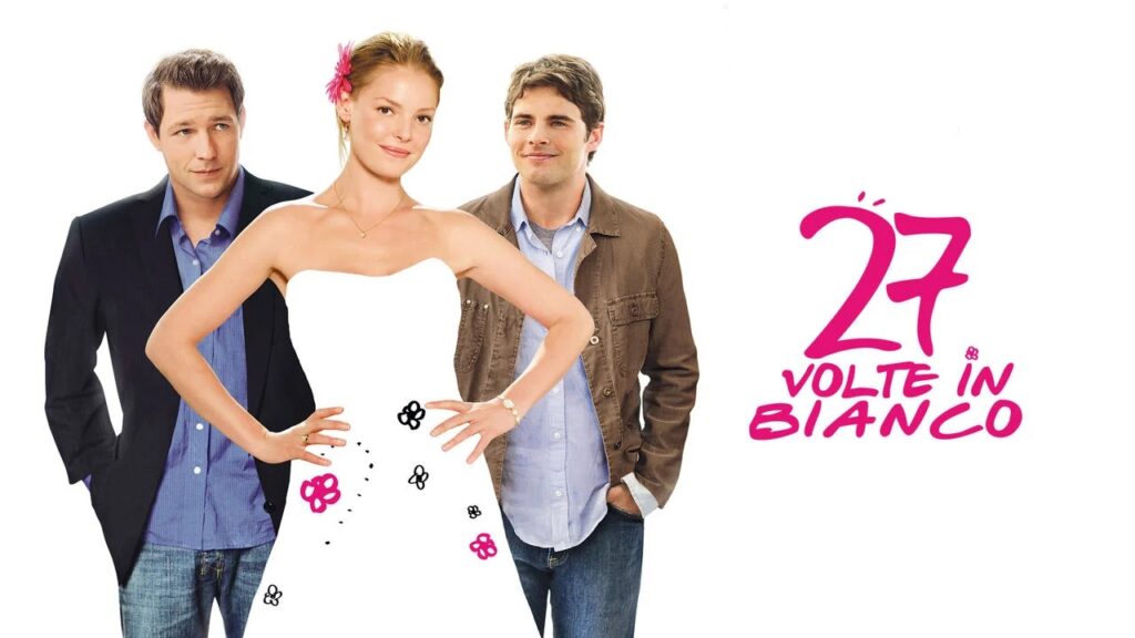 27 volte in bianco è una commedia romantica con Katherine Heigl, diretta da Anne Fletcher e scritta dalla sceneggiatrice de Il diavolo veste Prada. La giovane Jane si trova sempre a fare da damigella d’onore ai matrimoni delle amiche: un giorno sarà chiamata a svolgere il suo “dovere” al matrimonio della sorella, che si sposa con l’uomo di cui è segretamente innamorata.