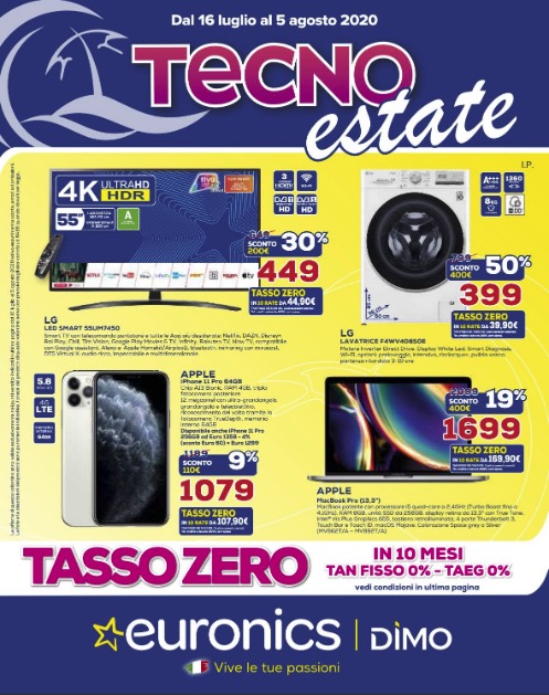 Queste e tutte le altre offerte del volantino di Euronics Dimo “Tecno estate” sono consultabili qui di seguito, dove trovate il volantino nella sua interezza. Ecco, invece, il link allo store online Euronics per le offerte disponibili lì:
