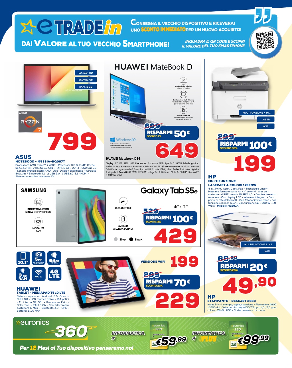 Magari questi dispositivi Samsung non godranno, considerando lo street price, di offerte eccezionali, ma questa potrebbe essere la soluzione per acquistare una TV o un notebook in comode rate. In ogni caso, a questo indirizzo potrete visionare il nuovo volantino di Euronics valido per la vostra provincia.
