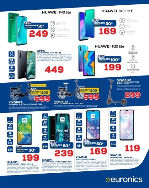 - Huawei P40 Lite E a 169 euro invece di 199 euro;