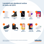 Quanto alle categorie di prodotti per i quali gli italiani si rivolgono più spesso all’e-commerce, l’elettronica svetta su tutti (74,9%), tallonata da moda e accessori (64,4%). Infine tra i prodotti che gli italiani hanno cercato maggiormente per confrontarne i prezzi vale la pena citare le Apple AirPods 2019, prime in assoluto, e alcuni smartphone come Apple iPhone XR, iPhone 7, iPhone 11 e Samsung Galaxy A50. Le console più cercate sono state Nintendo Switch e Sony PS4 Slim, mentre il gioco più desiderato è stato FIFA 20.