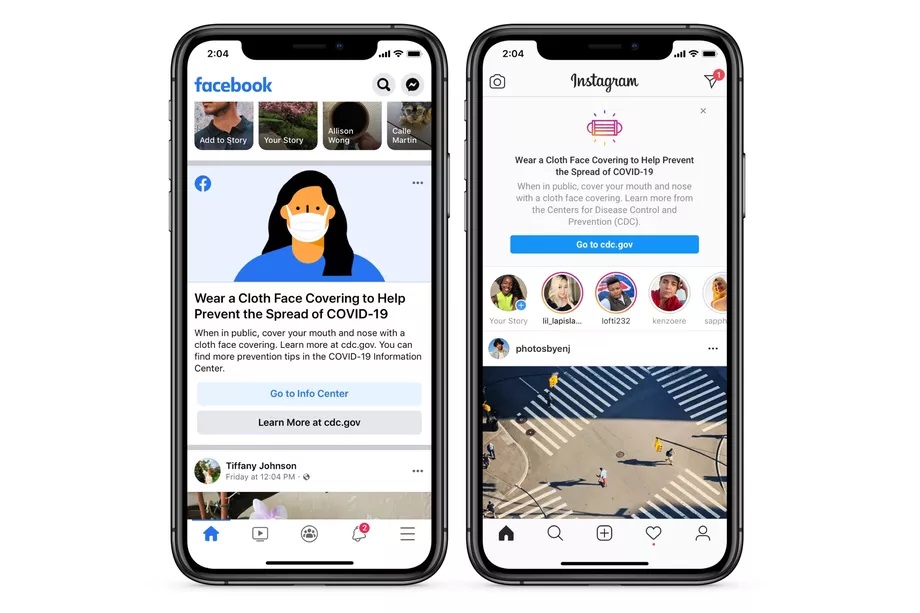 La società ha annunciato che gli avvisi per sensibilizzare gli utenti a indossare la mascherina inizieranno ad apparire su Instagram e Facebook in questi giorni.