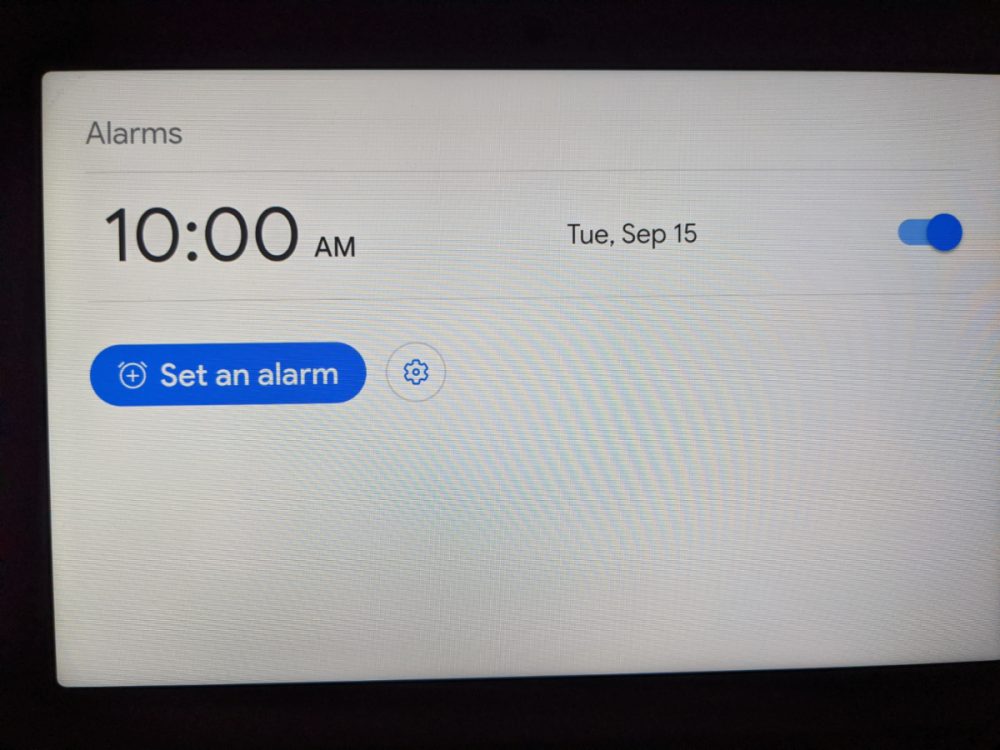Gli aggiornamenti dell’interfaccia di Nest Hub e degli Smart Display in generale avvengono solitamente in background. Queste funzionalità per gli allarmi sembrano essere disponibili con la versione 1.46.215072 del firmware Cast che non è ancora ampiamente disponibile.