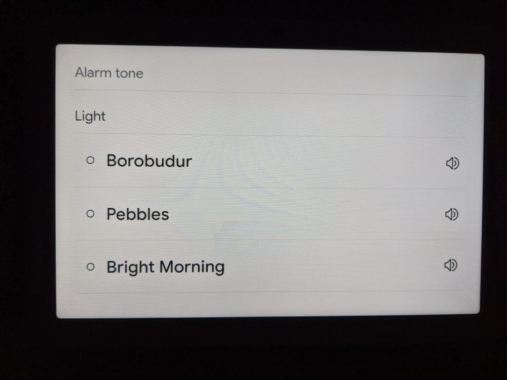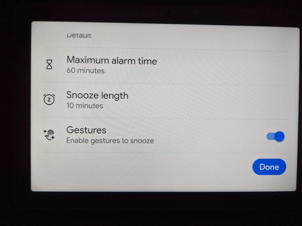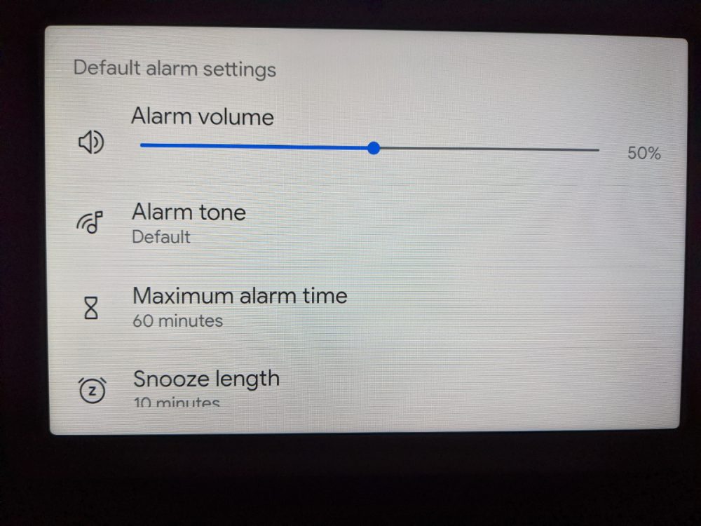 Una pagina dedicata consente di impostare molte preferenze per gli allarmi direttamente sullo Smart Display, tra cui volume, tono, durata massima della sveglia e la durata dello snooze, oltre ai gesti per posticipare che potrebbero essere riconosciuti tramite il rilevamento degli ultrasuoni.
