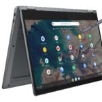 Chromebook Lenovo Ideapad Flex 5 è un PC convertibile da 13 pollici, con un peso di soli 1,35 kg. Dispone di un processore Intel Core i5 di decima generazione, SSD PCIe fino a 128 GB e memoria RAM DDR4 fino a 8 GB, oltre a due altoparlanti stereo per un audio di qualità anche in movimento. Il display con cornici sottili, come anticipato, è in questo caso da 13,3 pollici ed è un IPS Full-HD con luminosità fino a 300 nits. Si tratta del primo Chromebook con supporto integrato a una penna digitale, sensibile alla pressione e sfruttabile con le app Adobe Suite.