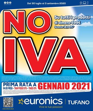 Un nuovo volantino “NO IVA” è stato lanciato da Euronics – Gruppo Tufano, con tante offerte che saranno disponibili fino al 3 settembre 2020, accompagnandoci così per tutto il mese di agosto.