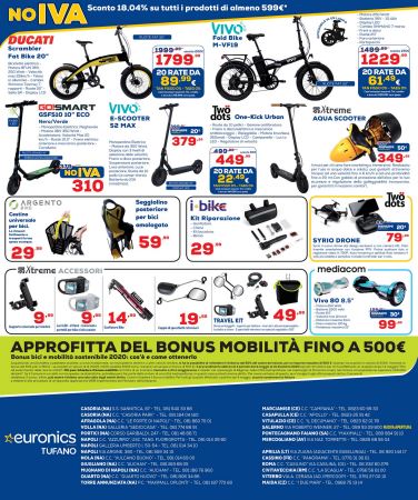 Il nuovo volantino in questione prevede lo sconto del 18,04% (corrispondente all’importo scorporato dell’aliquota IVA in vigore) su tutti i prodotti che hanno un prezzo di almeno 599 euro, eccezion fatta per quelli di alcuni brand, come Apple, Dyson e Bose o su quelli che sono al centro di altre promozioni attualmente in corso.