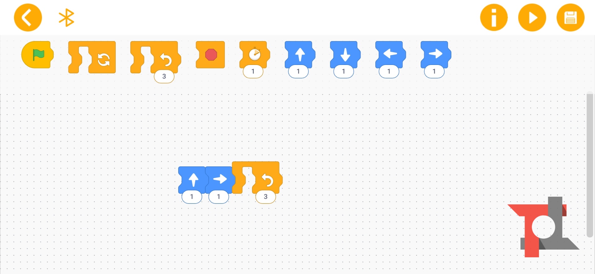 La modalità migliore, a mio avviso, è quella della programmazione, che ha una parte educativa. È infatti possibile scegliere tra una serie di blocchi, ognuno dei quali rappresenta una delle funzioni. Potete indicare al modellino di muoversi in una delle quattro direzioni, fare una svolta a 180 o 360 gradi, rimanere in pausa o fermarsi. Sotto ai vari blocchi è presente un numero che indica la durata del movimento nella direzione prescelta.
