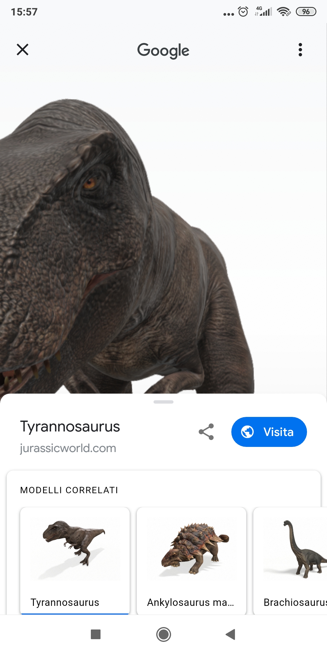 Su iOS basta cercare “dinosauro” o uno dei 10 dinosauri sull’app Google o su Google.com con Chrome o Safari. I contenuti 3D e AR sono disponibili su dispositivi con iOS 11 e versioni successive.